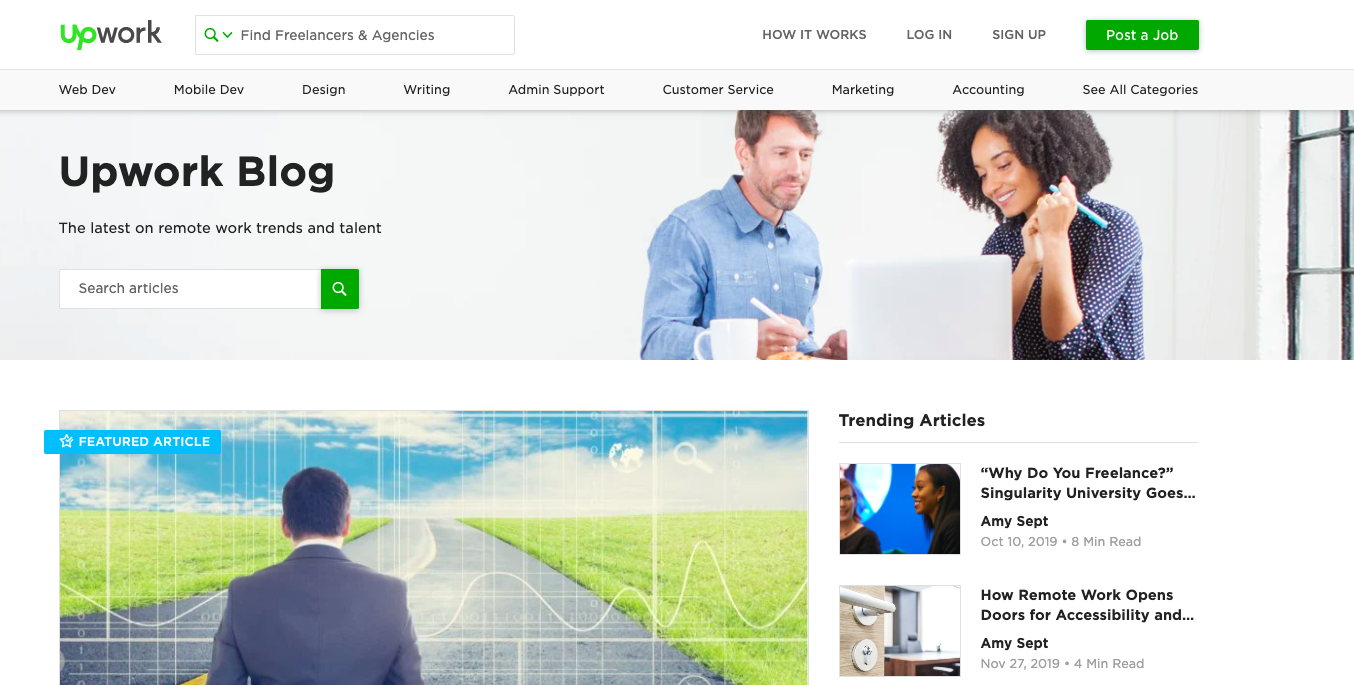 The UpWork blog publishes useful articles for freelancers on topics such as remote work, soft skills, web design, digital marketing and many more.