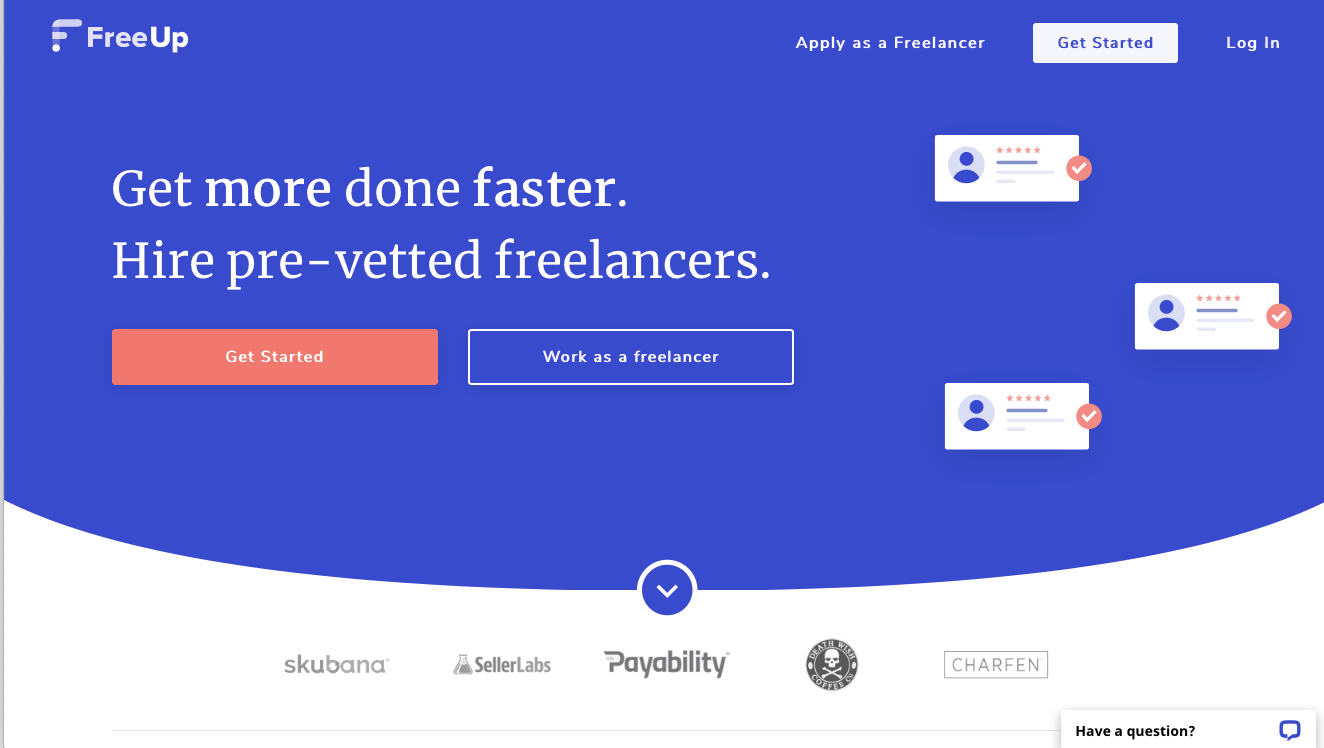 FreeUp connects business owners with freelancers in a wide variety of domains, such as bookkeeping, social media management, SEO, customer service, digital marketing and many more.