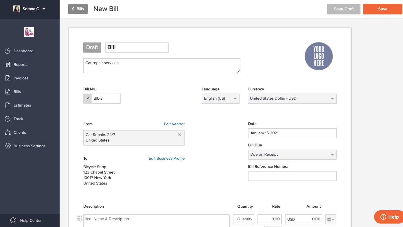 And that's it, your new bill is ready! Now you can save it with the help of the orange "Save" button in the upper right corner of the bill.
