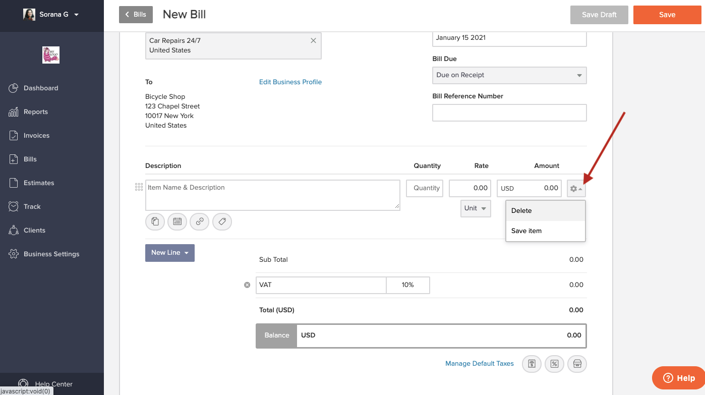 If needed, you can add any other taxes, discounts or shipping costs incurred by using the corresponding buttons under the bill balance on the righthand side. You can find a guide on how to use these buttons here.