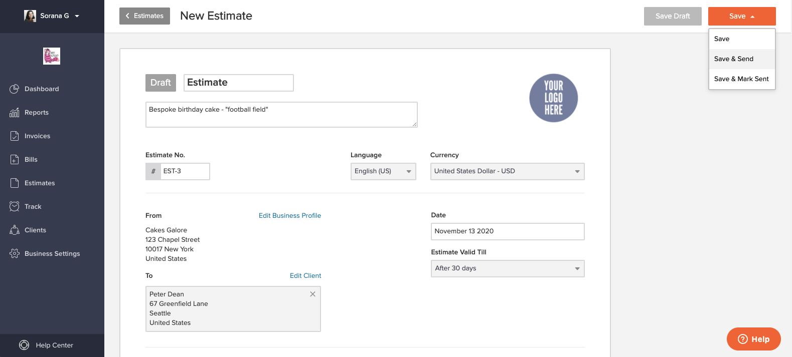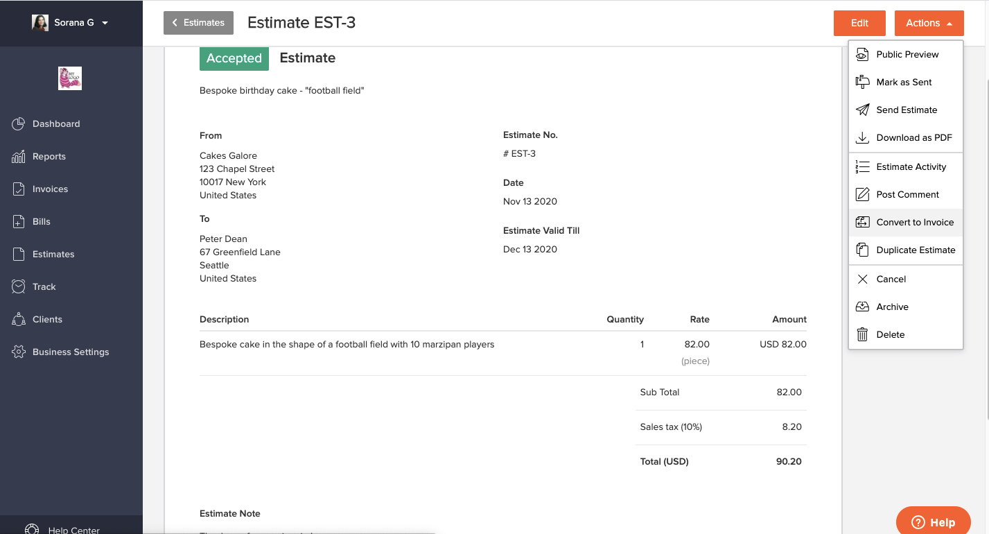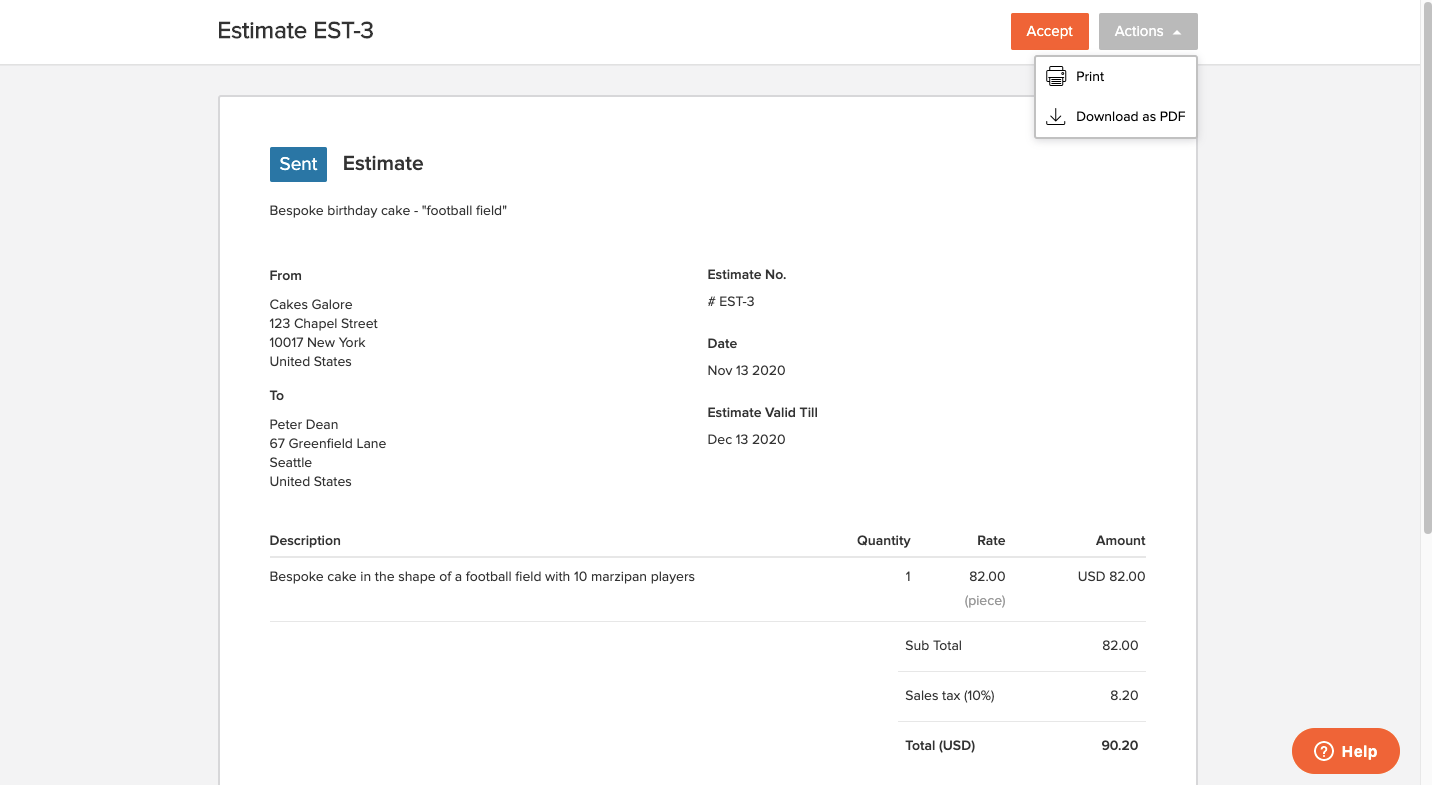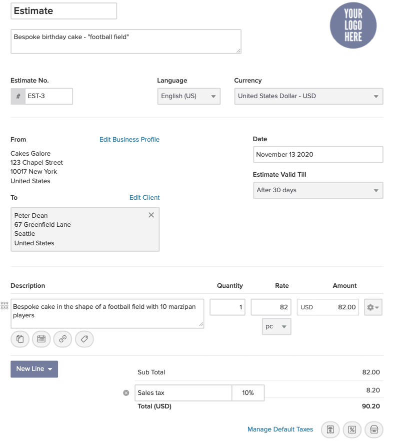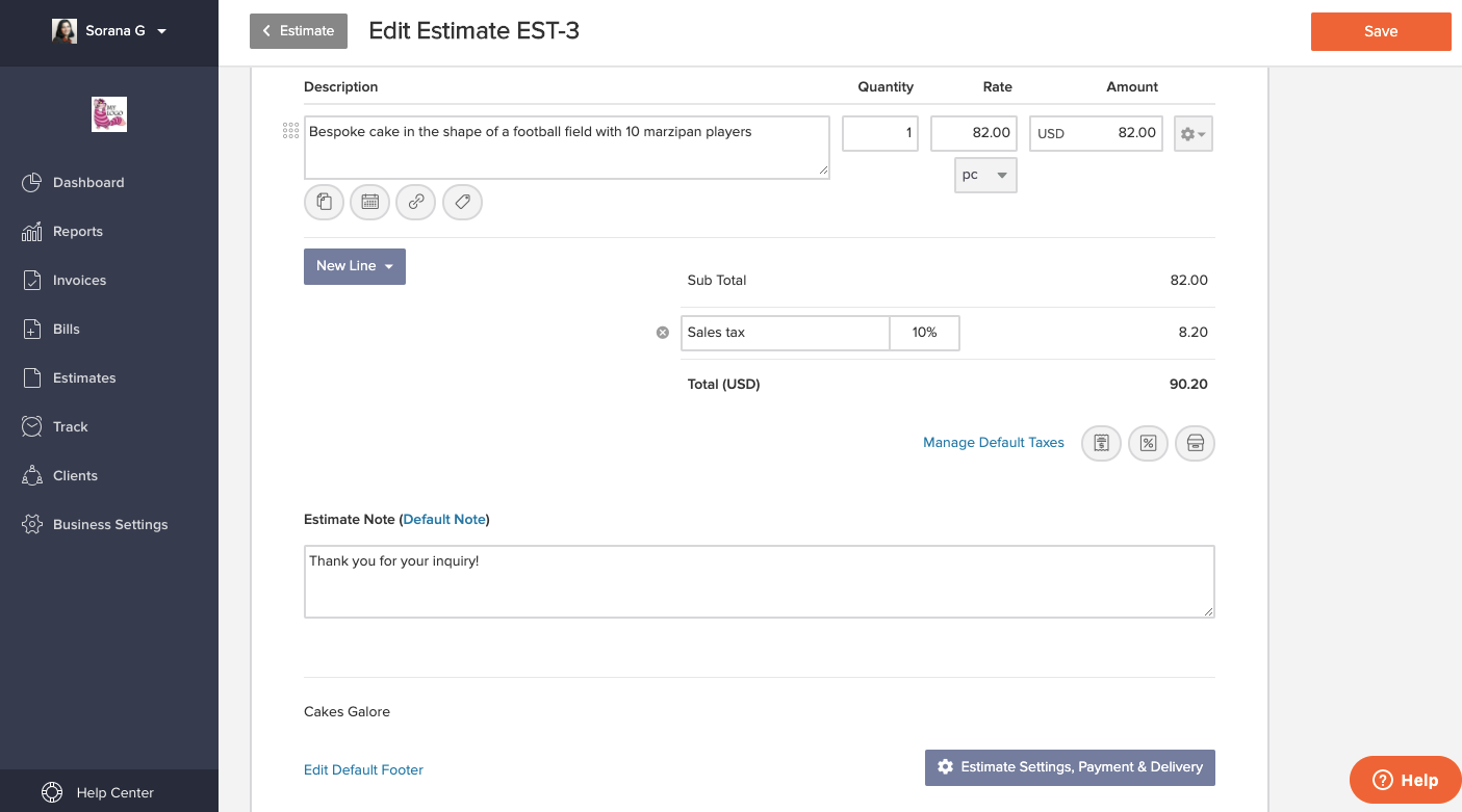 Let's say you have a cake business and a client sends you an inquiry for a bespoke birthday cake. You can send them an estimate in the following way: